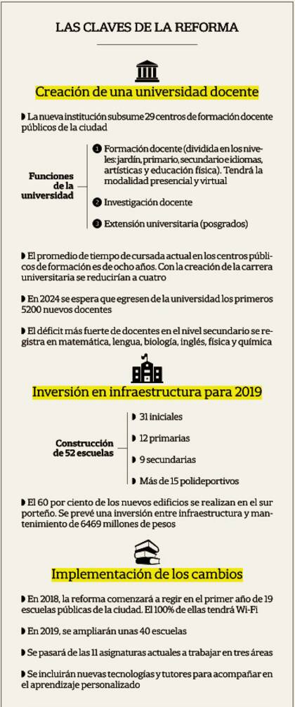 Al anticipar la creación de una universidad de formación docente, los funcionarios de la Ciudad confirmaron que el año próximo empezará a implementarse la Secundaria del Futuro, que incluirá prácticas profesionalizantes y cuyo anuncio, efectuado a mediados de año en medio de la campaña electoral, desató una serie de protestas estudiantiles con tomas de escuelas y cese de clases.