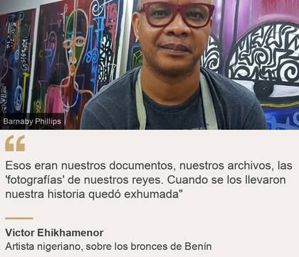 “Una parte de mis ser siempre se sentirá culpable de no haberlo devuelto a los nigerianos... es un pasado turbio, mezclado con el colonialismo y la explotación”.