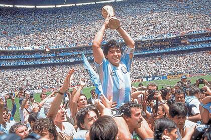 Diego Maradona, que en cuartos de final había marcado aquel gol imposible ante Inglaterra tras recorrer media cancha, alza el trofeo en el estadio Azteca, de Ciudad de México, luego de que la selección nacional se impusiera 3-2 en la final ante Alemania.
