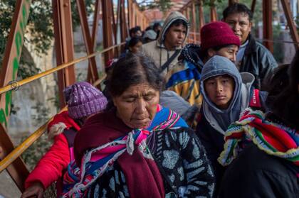 Un autobús llega a romper con el orden, algo precario, de paso de vehículos. Toda la estructura de la frontera ha quedado chica para el volumen de personas que la transitan. El puente peatonal para pasar de Villazón a La Quiaca es tan limitado que muchos grupos optan por dejar todas sus valijas al cuidado de un familiar, al final del puente que desemboca en el escáner de Aduana. Cuando llega su turno se reencuentran ahí.