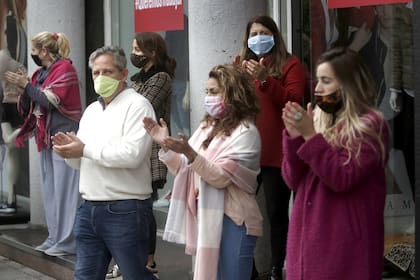 Esta "apertura simbólica" se acompañó con propietarios y empleados en las veredas de los principales paseos comerciales de la zona, con aplausos, golpeando ollas y también con bandejas en el caso de los gastronómicos, que pueden funcionar mediante modalidad delivery y take away, pero que siguen -y seguirán por un tiempo más- con mesas y sillas vacías.