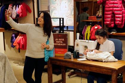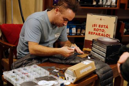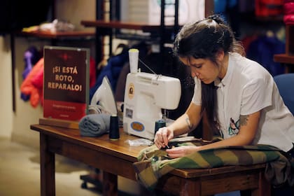 María Urdapilleta tiene 30 años y es una de las reparadoras en el local de Patagonia. "Vino mucha gente. Quemaduras de cigarrillo las reparaciones más frecuentes en polar y los parches en camperas de plumas enganchadas", explica. Hace tres años que María, que es diseñadora y trabaja en una fábrica textil, en el área de compras, empezó a meter mano a la reparación. Cuanta que su mamá cosía y ella aprendió desde chica que las cosas no tenían una vida sino varias. Aprendió a coser, a tejer, a bordar ."Hay mil formas de reparar una prenda, cuando sabés eso, nunca tu primera opción es descartarla", dice.