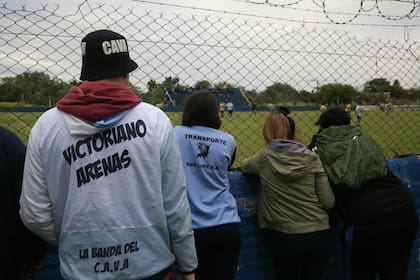 En la tribuna visitante hay unas veinticinco personas con paraguas, el público local los triplica en gente y ruido. La banda del CAVA suena fuerte para que todo el barrio escuche. Flamean banderas celestes y blancas -los colores de Victoriano- y el entusiasmo no disminuye pese al resultado, que terminará siendo 2-3.