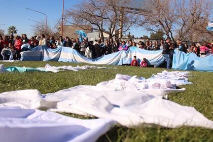 Los participantes del "chaquetazo", como lo denominaron sus organizadores, exhibieron carteles con consignas como "No cuenten con nosotros", "Cuidemos las dos vidas" y "Sí a la vida", entre otras. En el evento también se juntaron firmas para acompañar un petitorio que se enviará al Senado nacional.
