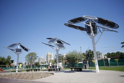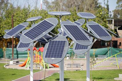 En total los llamativos ejemplares de estructura metálica circular contienen 18 paneles solares, además de un área con juegos para niños y otra zona de descanso, más allá del tradicional césped y una importante variedad de árboles reales que están en crecimiento. "La construcción y remodelación de la Plaza tiene árboles con paneles solares además de un sector recreativo y descanso. Estos árboles proveerán de energía al paseo y su entorno, por ende todo el consumo energético del lugar será cubierto por energías limpias", resaltó Zalazar, quien apuesta a expandir esta iniciativa en todos los espacios públicos de la comuna por el aporte que realizan sostenido en el tiempo. Es más, la flamante plaza permitirá abastecer a la red de la zona, a través de un medidor bidireccional.