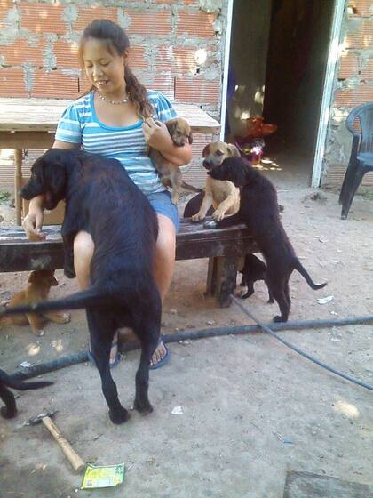 “Hoy en casa tengo 11 perros que viven conmigo, todos rescatados. Y es que no puedo mirar al costado y hacer como que no pasa nada, que no están”, confiesa con su voz de niña, aunque con un sentido de la responsabilidad que muchos mayores envidiarían. A ellos se le suman los que día a día se acercan a su casa a comer, cual comedor comunitario canino. Siempre hay un lugar para uno más, la comida no se le niega a nadie.
