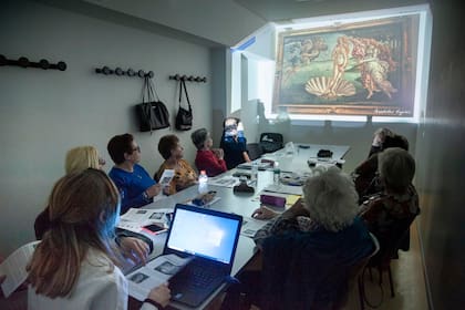 Las imágenes de cuadros del pintor renacentista Sandro Botticelli evocan recuerdos placenteros, como viajes a Italia, libros leídos, la adolescencia y las clases del secundario. Los asistentes al Taller de Estimulación Artística de la Fundación Favaloro van desgranando ideas y aportando información guiados por los neuropsicólogos Laura Amatista y Juan Sorondo.