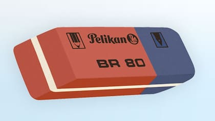 Todos en la primaria llegamos a tener las famosas gomas Pelikan bicolor BR 40, las cuales nos ilusionaban con la promesa de borrar tinta con la parte azul.