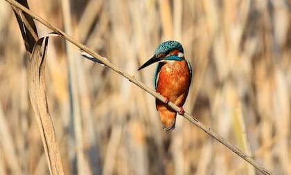 - 3.Martín Pescador: Mide entre 16 y 17 centímetros de longitud. Necesita taludes arenosos para excavar su nido. Se alimenta de peces, larvas y anfibios.