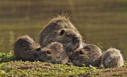 5. Carpincho: Puede llegar a medir hasta 1,30 metros y pesar unos 60 kilos. Su dieta se compone de pastos, gramíneas ribereñas y plantas acuáticas