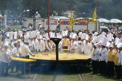 Como cada primer domingo de diciembre, la localidad bonaerense de Pigüé vivió una fiesta con la tradicional preparación del omelette gigante. En el marco del festejo de los 129 años de la ciudad, se cocinaron 15.000 huevos y 100 kilos de jamón picado, 5 kilos de perejil, 8 de cebolla de verdeo, 6 de sal, 4 de pimienta y 30 litros de aceite.