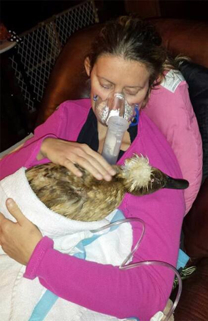 Un tiempo después, Scott tuvo una recaída -ella sufre una extraña enfermedad autoinmune que la ataca por períodos con síntomas diversos-; y en medio de su ya acostumbrado tratamiento con oxígeno, el pato se acercó y se posó junto a ella hasta que finalizó el procedimiento. Ashley quedó sorprendida por la fidelidad de su amigo con plumas.