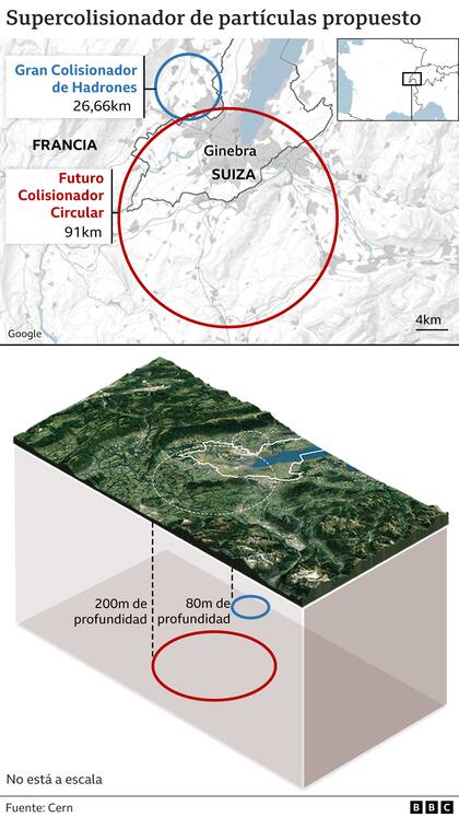 En la práctica son muchos los interrogantes que rodean a la propuesta de los científicos que trabajan en el Gran Colisionador de Hadrones (GCH) para construir una máquina tres veces más grande que la actual: el Futuro Colisionador Circular (FCC).
