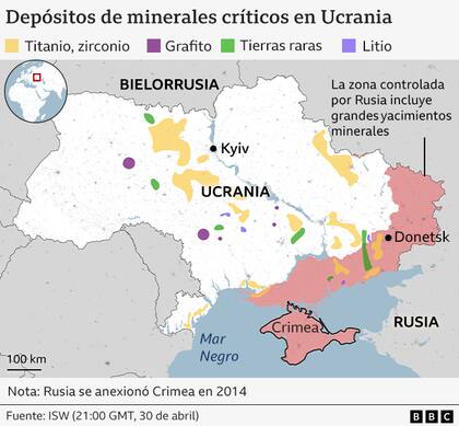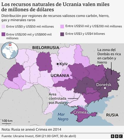 En cuanto a otros importantes recursos minerales ucranianos, cerca del 70% de ellos se encuentran, según Forbes Ukraine, en las regiones de Donetsk, Dnipropetrovsk y Luhansk. Es decir, muchos están en territorio invadido y aún ocupado por Rusia.