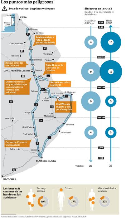 Cada año, 10 millones de vehículos transitan por la ruta 2, y es la primera vez que se dispone de estadísticas rigurosamente elaboradas de las causas, las lesiones y la atención suministrada a las víctimas de los siniestros en las rutas que llevan a las playas bonaerenses.