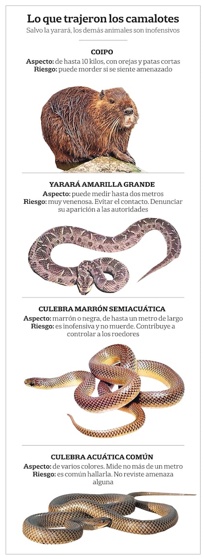 "No hay que agredir la herida más de lo que lo hizo el animal. Conviene mantener a la persona quieta y sacarle todo objeto que provoque presión, como anillos, relojes o calzado, sin aplicarle ningún medicamento", indicó Susana Lloveras, titular de la Sociedad Latinoamericana de Medicina del Viajero. "Estos accidentes se producen cada tanto. Pero con la llegada de los camalotes aumentan las posibilidades", agregó.