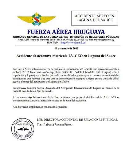 El comunicado del accidente