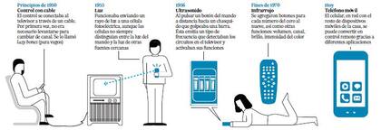El primer control remoto desarrollado para un televisor se conectaba al aparato por medio de un cable. Fue bautizado lazy bones (para vagos) y tuvo un paso fugaz por las manos de los antepasados de Homero Simpson allá por 1950. Desde entonces, los fabricantes lo intentaron todo: fotocélulas, ultrasonido e infrarrojo.