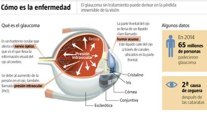 "Dentro del ojo hay un líquido transparente que nuestro cuerpo produce y elimina continuamente. Si se bloquea el drenaje de este líquido por sus canales naturales, se produce acumulación y aumento de presión dentro del ojo. Esta presión aumentada disminuye el flujo de sangre y comprime el nervio óptico, llevando a la pérdida de la visión", explicó Daniel Grigera, jefe del Servicio de Glaucoma del Hospital Oftalmológico Santa Lucía.
