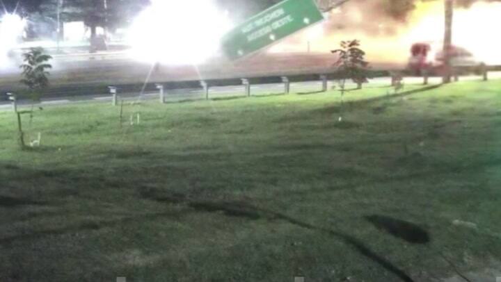 LA NACION tuvo acceso al video del instante en que la Amarok colisionó contra el cartel de señalización. De acuerdo a las imágenes, se observa que la camioneta transitaba a toda velocidad por el carril más rápido de la avenida General Paz cuando impactó de lleno contra el cartel. Fue tal la violencia del impacto que el rodado giró sobre sí en el aire y quedó en sentido contrario.
