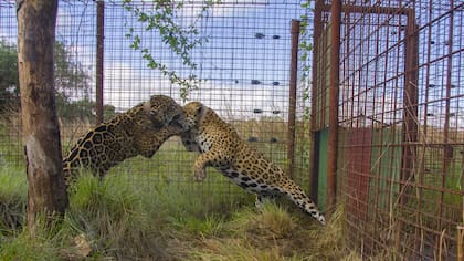 Ambos en sus encierros naturales —dos octógonos de 1200 m2 en el Centro Experimental de Cría de Yaguaretés (CECY)—se fisgonean sin disimulo. Coquetean con insistencia. En minutos más, cuando las compuertas que los separan se abran, desplegarán su cortejo felino: rasguños y filosas garras sobre esas pieles de manchas perfectas. Estentóreos rugidos. Saltos acrobáticos. Veloces cross de derecha a izquierda y, hasta la actitud de sumisión del macho, vencido o desconcertado, ante la agresión (previsible) de ella.