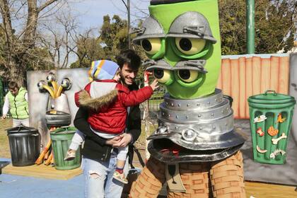 También disfrutaron de mesas hechas con madera prensada reciclable y bancos construidos con rollos de cartón, todo material ya reciclado, donde los chicos se pueden sentar a dibujar y pintar a los monstruos o tomar clases de instrumentos musicales hechos con material reciclado. Como lo hizo Joaquín Basso, de 6 años, que quedó fascinado con los instrumentos: "Toqué el palo loco, la latita y la pandereta. Y después me fui a tirar por el tobogán inflable, que me encantó".