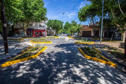 Esta primera obra intervino 47 manzanas, en las que residen unos 14.000 vecinos, y agregó 1400 m2 de espacios verdes, distribuidos en -como se dijo- pequeños canteros y macetas, que modifican el ancho de las calles, con la implantación de alertas de acceso mediante cruces elevados, demarcaciones horizontales y verticales, reductores de velocidad sobre la calzada y el uso del color amarillo como señal cromática para alertar a los conductores que circulen a una velocidad superior a la permitida.