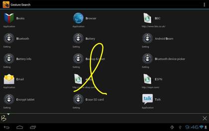 Google Gestures es como volver a las Palm, pero funciona perfecto. Permite buscar contactos, aplicaciones y canciones dentro de un Android con sólo dibujar las letras que componen parte de su nombre.