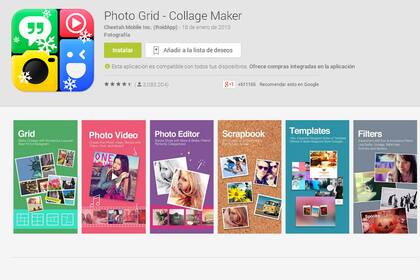 Una aplicación que ofrece, ante todo, sencillez. Está pensada para hacer collages con las fotos seleccionadas. Para eso, ofrece una gran cantidad de opciones, que incluyen agregarle marcos, efectos especiales y muchas más. Luego de elegir la foto, es posible incluso insertar texto, cambiar la forma y fondo de cada plantilla. Viene en varios idiomas.