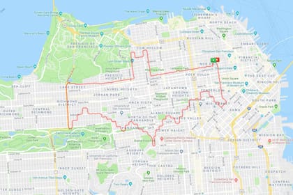 Lenny Maughan vive hace 20 años en San Francisco. Le gusta salir a correr y medir cuánto y cómo lo hizo, usando una aplicación (Strava, muy popular entre los runners) que usa el GPS del celular para marcar por dónde pasó. Cualquiera que haya usado una aplicación de este tipo lo sabe: el trayecto por las calles de una ciudad termina generando una silueta, en la que algunas personas adivinan una imagen sugerida.