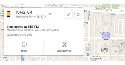 No obstante, Google anunció el servicio Android Device Manager , un sistema que permite localizar un dispositivo con el sistema operativo móvil de la compañía, emitir una alarma sonora y, si se desea, proteger la información personal del equipo mediante el borrado remoto en caso de no poder recuperar el teléfono o tableta.