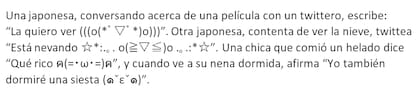 A 30 años de la aparición de las caritas hechas de caracteres, un vistazo a los kaomoji nipones, una versión más compleja del emoticón, utilizada para reflejar los estados de ánimo en las conversaciones on line