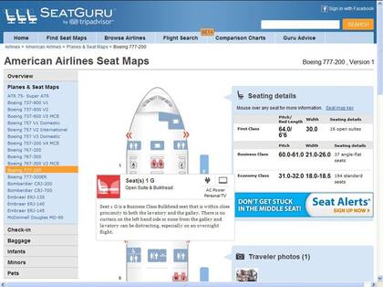 SeatGuru.com es el primer paso para abordar un vuelo confortable. Parte de la compañía TripAdvisor ( www.tripadvisor.com.ar ), que lo adquirió en marzo de 2007, SeatGuru ( www.seatguru.com ) permite saber cuáles son los mejores y peores asientos en los principales modelos de avión de las mayores líneas aéreas del mundo, así como otros datos que ayudan a organizar un vuelo placentero, desde el check-in hasta el transporte de mascotas. Se pueden ubicar las naves por aerolínea y modelo, y también por número de vuelo. SeratGuru fue listado entre los mejores 12 sitios de viajes por la revista Forbes en 2006.