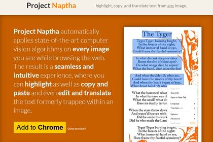 En uno de los hackatones que organiza periódicamente por el MIT, Kevin Kwok, un estudiante de esa universidad, presentó el Project Naptha, una herramienta que, a través de un algoritmo, permite reconocer y copiar cualquier texto que aparezca dentro de una imagen.