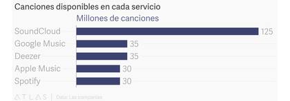No funciona todavía en la Argentina, pero aún así su oferta es impresionante: 125 millones de canciones, superando ampliamente a Spotify o Apple Music, que tienen 30 millones de tracks en sus discotecas, o a Google Play Music, que tiene 35 millones. ¿Cuál es el servicio? SoundCloud, algunas veces llamado el YouTube del audio.