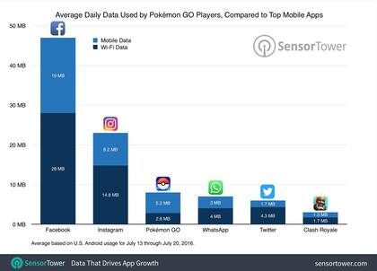 Los datos, aclara, son de referencia, y con razón: en la Web hay múltiples reportes de usuarios que dicen que en lo que llevan jugando al Pokémon Go (que todavía no cumplió un mes de vida) no pasaron de los centenares de megabytes acumulados en varias semanas. Es decir, muchos menos (pero igual es importante tener el dato en cuenta si tienen un plan exiguo en ese ámbito)