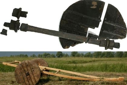 "Hay una explosión de evidencia arqueológica de vehículos con ruedas a partir de 3400 a.C., con estos apareciendo en señales escritas para carrozas, imágenes bidimensionales de carrozas y carretas, modelos tridimensionales de carretas y partes de ruedas y ejes de madera preservados", señala.