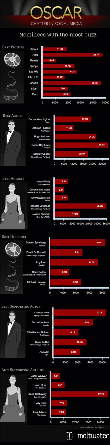 Antes de que se conocieran los ganadores del Oscar , la consultora MeltWater rastreó cuáles eran las películas y actores que más "ruido" ( buzz en inglés) hicieron en las redes sociales.