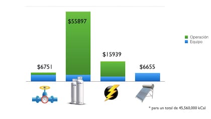 En el caso de utilizar un termotanque eléctrico, la cantidad de electricidad que se consume es muy alta. Si bien las tarifas eléctricas en el país son artificialmente bajas, 100.000 kCal nos cuestan $ 26,47. Para 45 millones de kCal pagaríamos, a lo largo de 20 años, $ 12.060, recuperando la inversión del equipo solar en menos de cinco años.