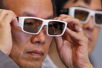 La industria se niega a dejar en el pasado el recurso de utilizar este tipo de formato. En este caso, un visitante prueba el HEWDD (High End Wearable Display Device)