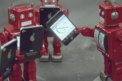 En el caso de los consumidores, la crítica va por el lado de esta suerte de consumo insaciable (y poco reflexivo) por la novedad. La forma en que se extendieron ciertos hábitos de consumo (en este caso de aplicaciones y de celulares) que muchas veces nos hacen lucir como robots.