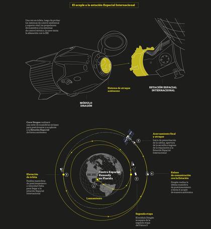 El proceso implicó ascender en sucesivas maniobras de la órbita inicial de la Crew Dragon (a 200 km de altitud) hasta la que ocupa la Estación Espacial Internacional (a 400 km de altitud), y en el proceso ir igualando la velocidad a la que se mueve esa Estación, que es de 28.800 kilómetros por hora.