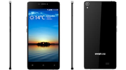 Este smartphone está acompañado por una funda de silicona, un protector de pantalla y posee 3G al igual que el resto de los equipos reseñados, pero se distingue por su diseño delgado y estilizado de 5,1 milímetros, con un cuerpo de aluminio y batería no removible de 2100 mAh; de los mencionados en esta nota, es lejos el que tiene un diseño más atractivo; su pantalla AMOLED tiene, también, muy buena calidad de imagen. Al igual que el EXO Spanky, el smartphone de Hyundai no dispone de una funda adicional.