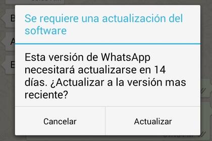 Whatsapp y el misterioso aviso de actualización en 14 días