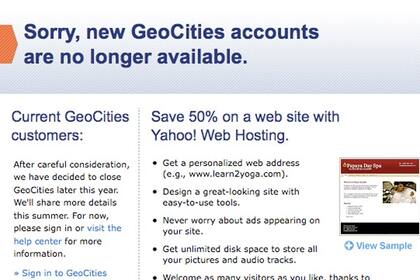 Los usuarios de GeoCities, pionero en la oferta de sitios web personales gratuitos , se encontraron hoy con un cartel en la página principal que advierte que "después de considerarlo durante un tiempo, se decidió anular la herramienta antes de fin de año".