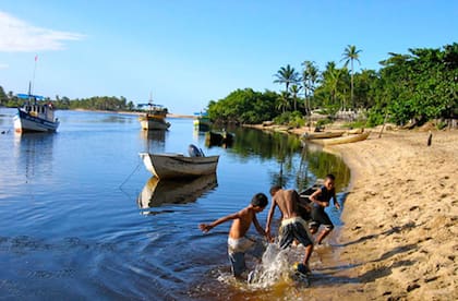 "Inútil como auto en Caraíva". Aplica tanto para los tacos altos como para la bicicleta y muchas veces, hasta la notebook. El wifi disponible es inversamente proporcional a la cantidad de arena de las calles y los kilómetros de litoral salvaje. Aquí, a diferencia de la vecina Trancoso, no llegaron los beach lounge. Nada de gazebos, sofás y DJs en la playa. Las barracas son como a los argentinos nos gusta imaginarlas: un mulato con camiseta verde-amarela, sonrisa franca, muy bien dispuesto, que por pocos reales lo deja a uno quedarse todo el día bajo el pareo que tiene atado a cuatro cañas, con derecho a esteira (esterilla) y silla. Si consume un peixe frito, unas batatinhas y/o unas cuantas cervezas, la carpa bahiana es gratis. Caraíva juega en una liga distinta que Trancoso (y ni que hablar de Arraial D' Ajuda y Porto Seguro). Por lo pronto, un dato: apenas arrima a los 700 habitantes estables. En verano esa cifra se multiplica, pero manteniendo el factor común. La gente que llega, lo hace porque comulga con su onda descolada, poco afecta al consumo y las modas.