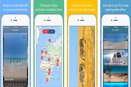 La app muestra imágenes en 360 grados de variados destinos en todo el planeta, que se pueden visualizar y visitar con lentes de RV.