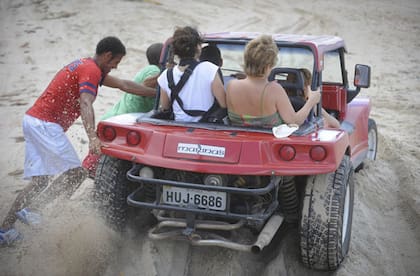 Mientras bordeamos los 4 km de arenas blanquísimas y piscinas naturales que separan la playa de Porto de Galinhas del Manguezal do Maracaípe, el chofer del buggy en el que nos movemos nos cuenta la historia del nombre de la playa. "Al principio este lugar se llamaba Porto Rico, porque desde aquí se exportaba a toda Europa el pau-brasil"(emblemático árbol de madera dura que acabó por bautizar a todo el país). "Después, a pesar de que se prohibió el tráfico de esclavos, los navíos negreros continuaban viniendo. Para disimular, traían a los negros junto con las gallinas de Angola y al arrojar las anclas anunciaban: Tem galinha nova no porto! Era el santo y seña para avisarles a los senhores dos engenhos que había llegado una flamante remesa de esclavos. Por eso la aldea empezó a llamarse Porto de Galinhas".