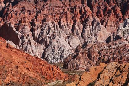 Pero nada opaca la belleza singular del valle de rocas rojas, violetas, anaranjadas, lilas, rosas, verdes y amarillas. Aquí, a tan solo 60 kilómetros de la localidad de Cachi, el desierto es multicolor.
