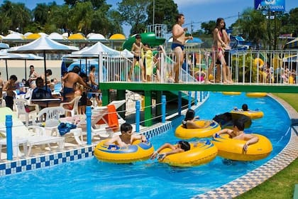 El parque incluye un río lento de 300 metros de extensión, un área cubierta con techo retráctil para días de lluvia, otras piscinas con juegos para la familia y, por supuesto, las atracciones solo aptas para valientes: Crazy Drop, una pista de skate tipo half-pipe de 13 metros de altura para deslizarse en gomones dobles; Space Bowl, tobogán acuático con remolino; o el Water Bomb, tres toboganes cerrados que salen de una torre de siete metros de altura y llevan a toda velocidad hasta una pileta.